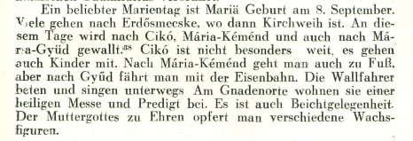 Mariä Geburt – Fekeder Brauchtum 2020.09.01. in Fekedi hagyományok_de Auszug aus dem Buch „Volkskundliche Beobachtungen in der Rhön-Siedlung Feked“ von Lygia Kuszter (1939)