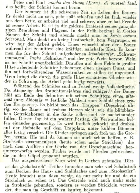 Erntezeit – Fekeder Brauchtum 2020.09.18. in Fekedi hagyományok_de Auszug aus dem Buch „Volkskundliche Beobachtungen in der Rhön-Siedlung Feked“ von Lygia Kuszter (1939)