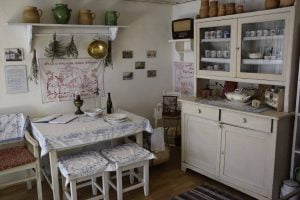 ahol megnézzük az emlékház német és felvidéki szobáját, valamint az időszaki kiállítást, melyen sárközi, pécsváradi, garamszentgyörgyi és kátolyi népviseletekbe öltözött babák közt fekedi babák is szerepelnek.