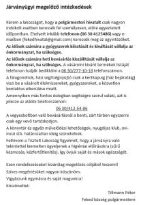 Feked község polgármestere az alábbi megelőző intézkedéseket hozta: