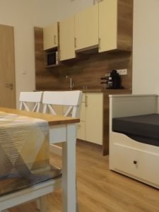 A felújítás eredményeképp három különálló apartman alakult ki. A két kétágyas és egy négyágyas lakóegység mindegyike pótágyazható, saját teakonyhával és fürdőszobával felszerelt. Az épület déli részében levő közösségi konyha és étkező is megmaradt, a helyi közösségi rendezvények lebonyolításához.