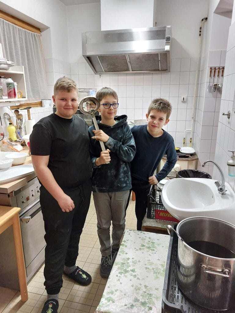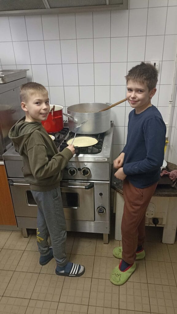 Másnap reggel a fiúk palacsintát sütöttek, ezalatt a többiek beszélgettek, játszottak,